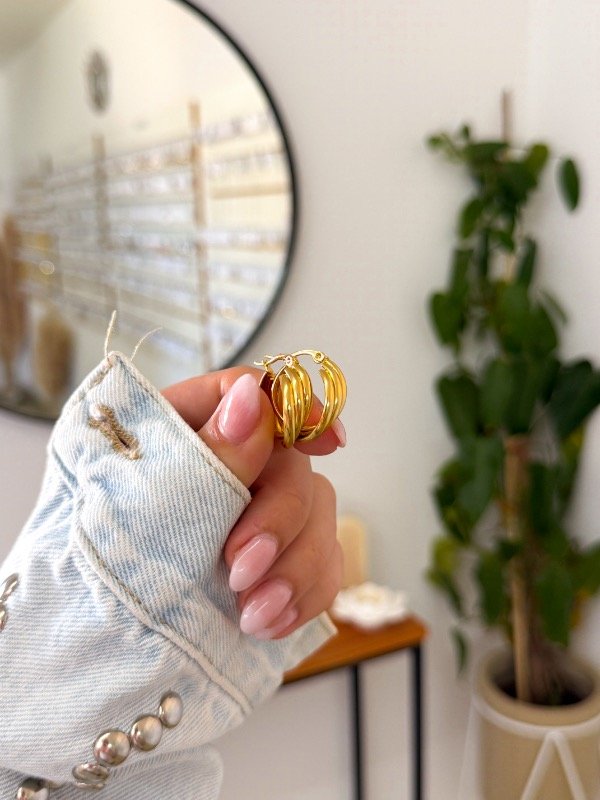 Argollitas acero dorado triple